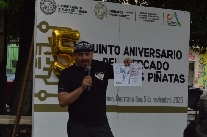 Playa del Carmen, Quintana Roo, 5 de noviembre de 2025. – En un ambiente de alegría, tradición y convivencia comunitaria, la Dirección de Mercados del Municipio de Playa del Carmen celebró el 5° Aniversario del Mercado Mundo de las Piñatas, un espacio emblemático que forma parte de la identidad económica y cultural de la colonia Bellavista.