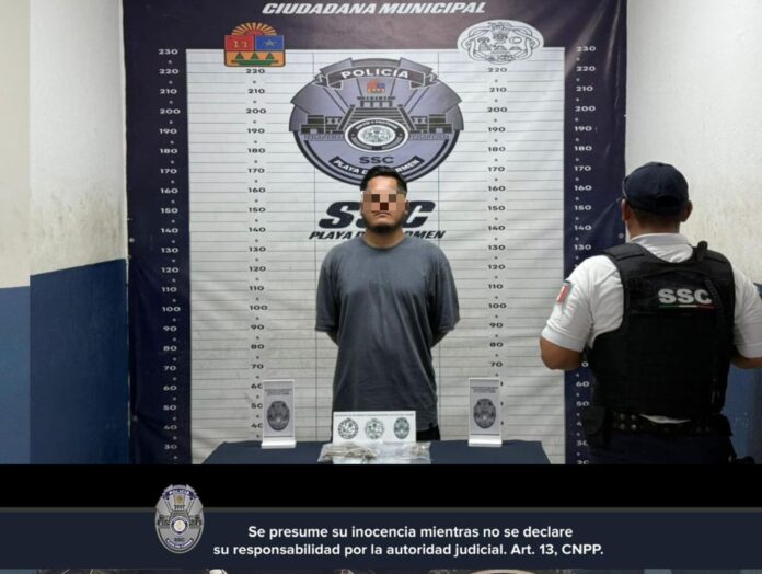 Elementos de la Secretaría de Seguridad Ciudadana del Gobierno de Playa del Carmen aseguraron a Blas Adiel N., de 32 años de edad, originario de Oaxaca, por su probable participación en delitos contra la salud.