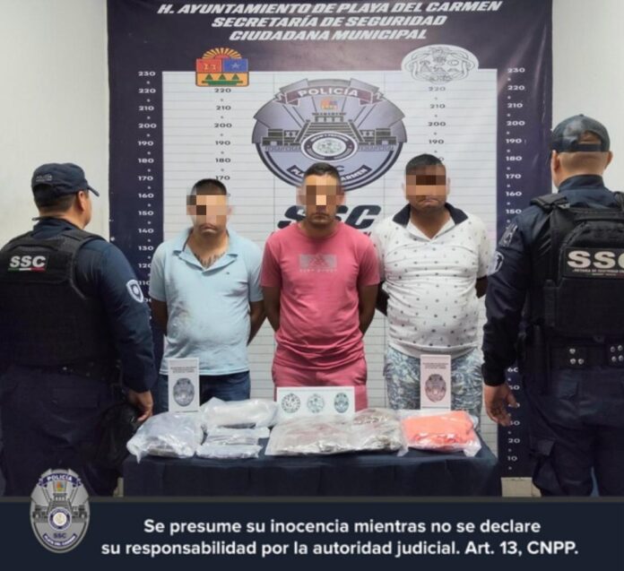 La Secretaría de Seguridad Ciudadana de Playa del Carmen aseguró a tres personas por presuntos delitos contra la salud, en la colonia Misión Las Flores.