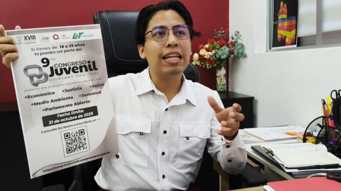 En ese sentido, anunció la convocatoria al IX Congreso Juvenil que organiza la XVIII Legislatura del Congreso del Estado de Quintana Roo, la cual permanece abierta hasta el 31 de octubre. Podrán participar jóvenes de entre 18 y 29 años, presentando propuestas en seis diferentes ejes temáticos relacionados con el desarrollo social y político del estado.