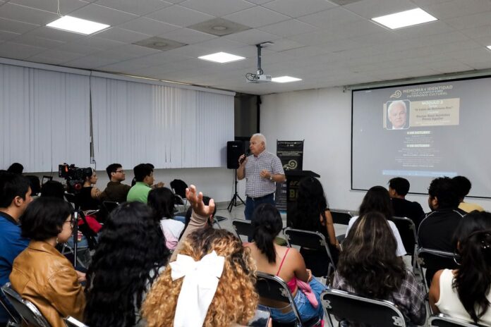 Playa del Carmen, Quintana Roo, 9 de octubre de 2025.— El Doctor Raúl Arístides Pérez Aguilar, escritor y miembro de la Academia Mexicana de la Lengua, impartió el taller “Así hablamos en Quintana Roo”, como parte del programa “Memoria e Identidad: Ciclo Académico sobre Patrimonio Cultural”, organizado por el Instituto Municipal de la Cultura y las Artes.